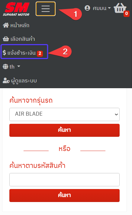 กดเมนูด้านบน และเลือกเมนู แจ้งชำระเงิน