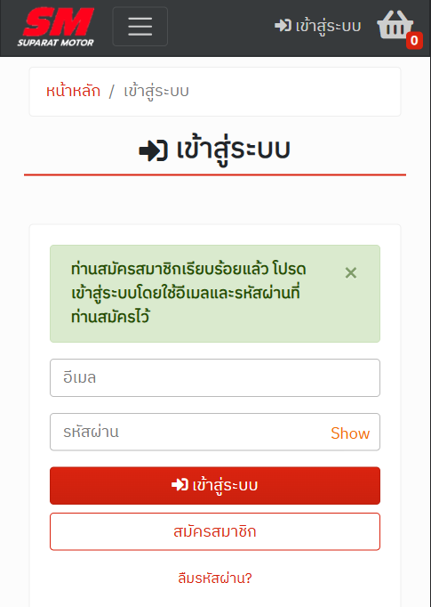 เมื่อสมัครสมาชิกสำเร็จแล้ว เข้าสู่ระบบเพื่อสั่งซื้อสินค้า โดยกรอกอีเมลและรหัสผ่านที่สมัครไว้